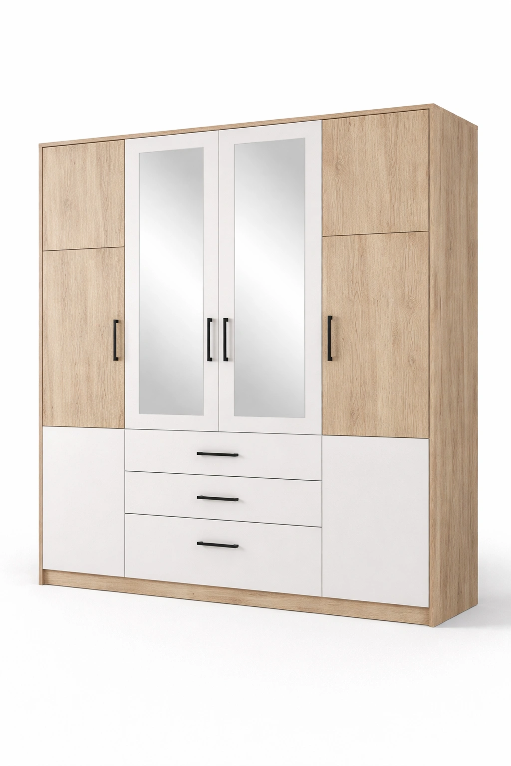 Armoire bois clair blanc portes miroir tiroirs centraux