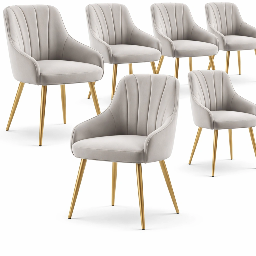 Chaise salle à manger tissu gris métal doré